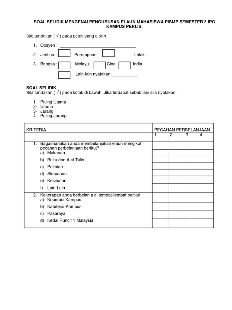 Contoh Borang Soal Selidik 2022 Word Pdf Geografi Pt3 Pelajar Universiti Produk Portal Cikgu