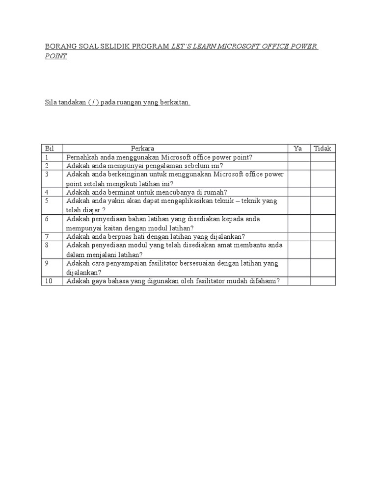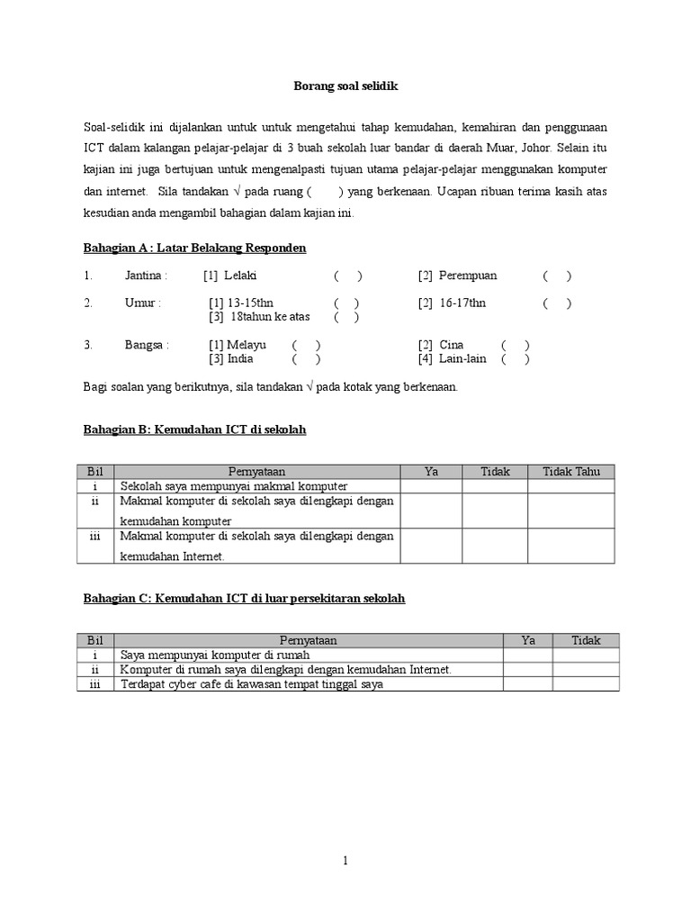 Yuk Simak Contoh Borang Soal Selidik Doc Terbaik Tekno Crash