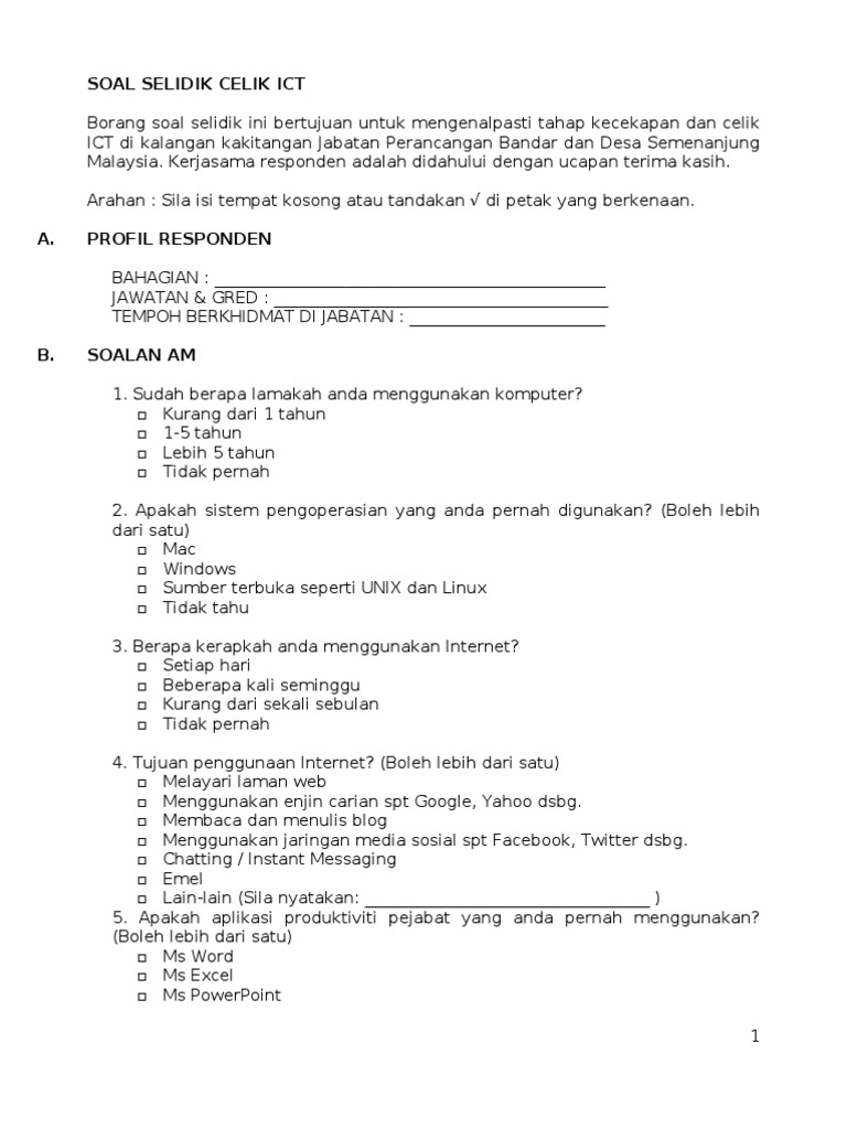 Borang Soal Selidik Celik Ict 2010 Pdf